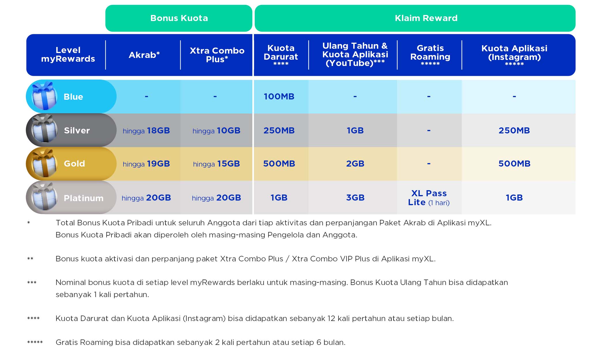 - Benefit yang didapatkan pelanggan dari myRewards dan XL Poin bersifat terbatas setiap waktunya